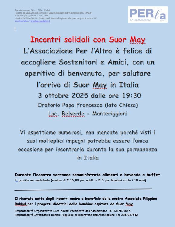 Alcune amiche della nostra Associazione stanno preparando quadri e giochi il cui ricavato andrà a sostegno delle iniziative benefiche promosse da Suor May